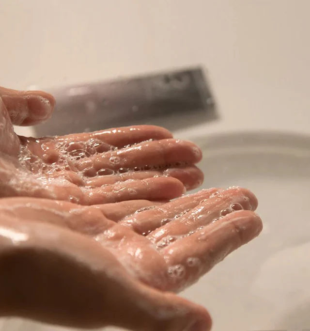 ضعي كمية صغيرة من الجل على يديك وافركيها لتكوين رغوة خفيفة.