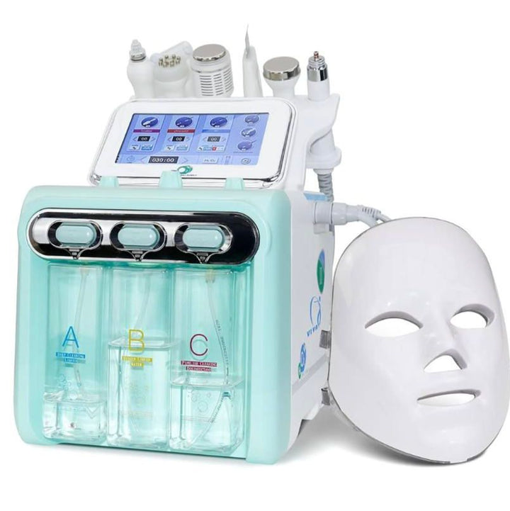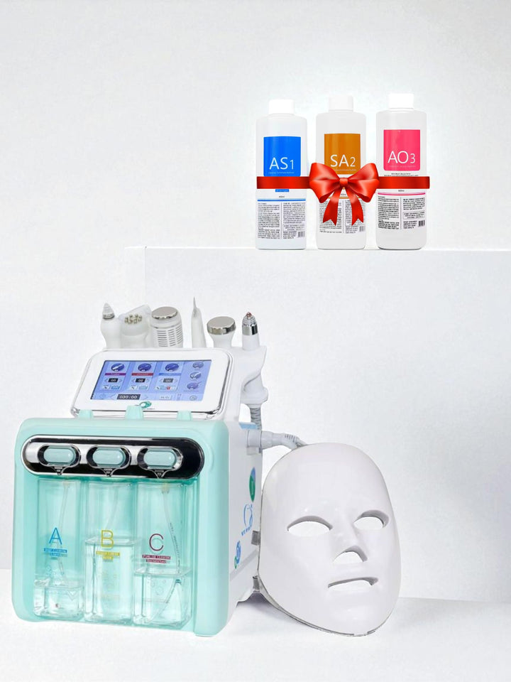 جهاز هيدرافيشل (Hydrafacial) متعدد الوظائف يُستخدم في مراكز التجميل والعيادات الجلدية لتنظيف البشرة بعمق، تجديدها، وترطيبها. يعمل الجهاز عادة عبر خطوات متعددة باستخدام سوائل مخصصة وعلاجات مختلفة للعناية بالبشرة.